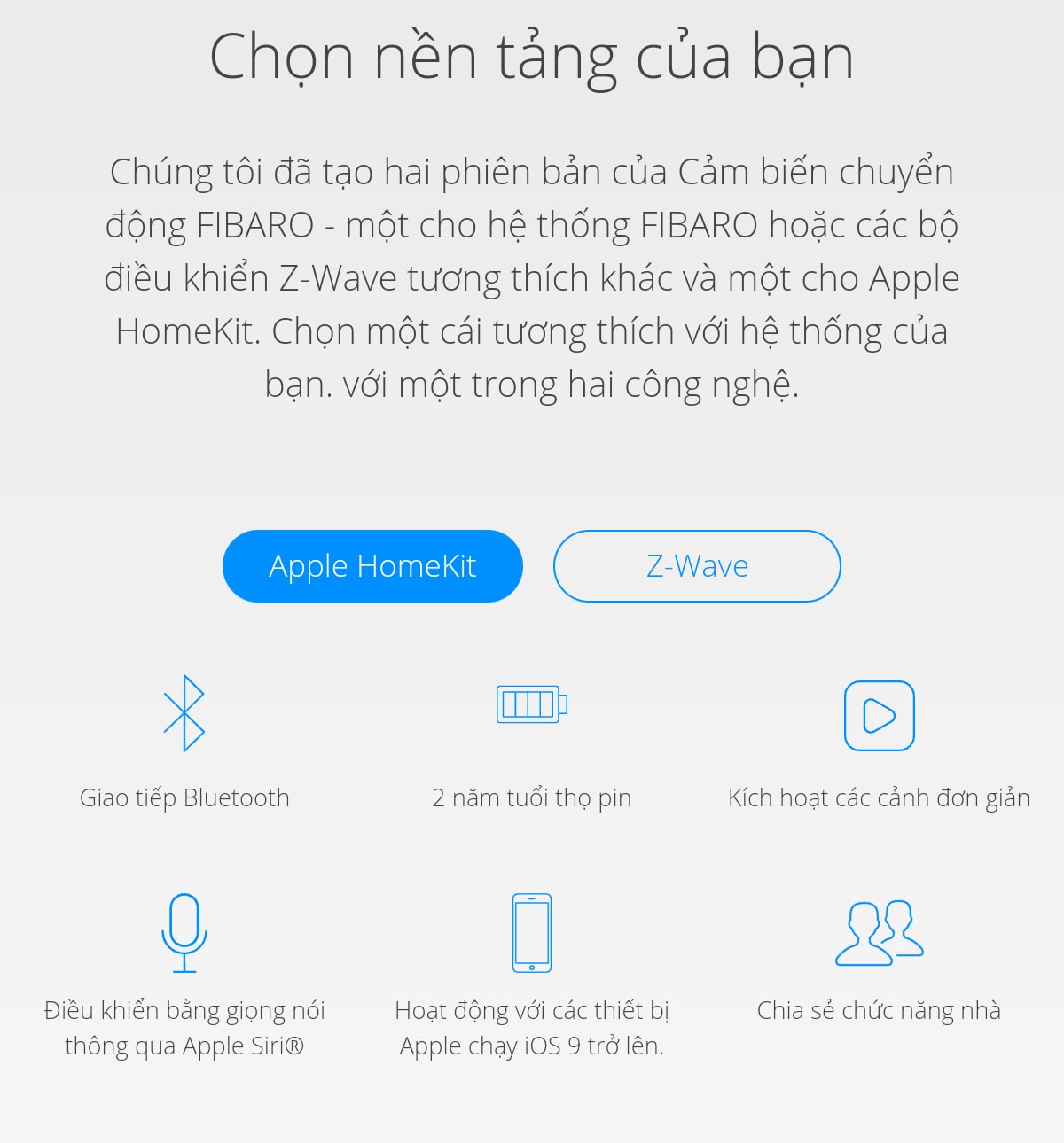 Chúng tôi đã tạo hai dòng Cảm biến chuyển động FIBARO - một dòng dành cho hệ thống FIBARO hoặc các bộ điều khiển Z-Wave tương thích khác và một dòng dành cho Apple HomeKit. Cho dù bạn chọn nền tảng nào, sản phẩm của chúng tôi được thiết kế để hoạt động trơn tru với một trong hai công nghệ