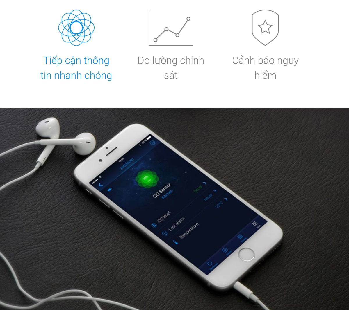 Hệ thống cho phép bạn biết ngay lập tức về mức carbon monoxide tăng lên bằng cách gửi thông tin quan trọng trực tiếp đến điện thoại thông minh của bạn.