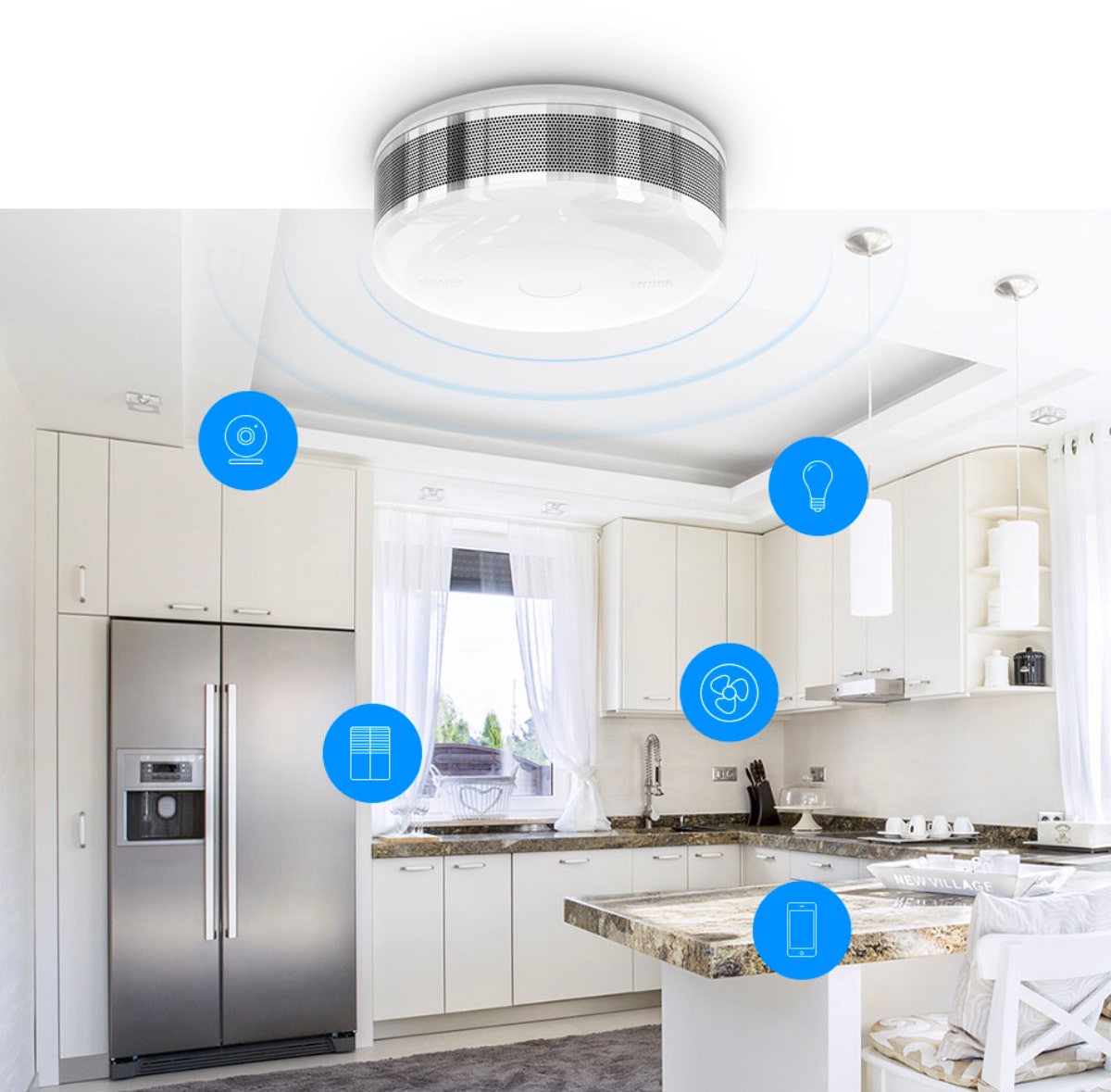 Kết hợp Cảm biến Khói với hệ thống FIABRO cho bạn khả năng điều khiển các thiết bị và quản lý các cảnh trong ngôi nhà thông minh của bạn bất cứ lúc nào. Không cần phải sử dụng điện thoại thông minh của bạn. Bạn chỉ cần nói ra những nhu cầu của mình với hệ thống thông minh Fibaro mọi nhu cầu của bạn sẽ được đáp ứng