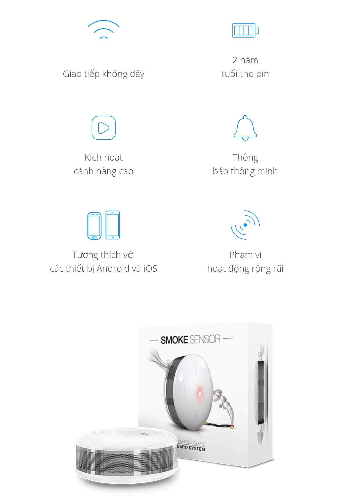 Cảm biến Khói này được thiết kế hoạt động trong hệ thống nhà thông minh công nghệ Z-Wave đảm bảo hoạt động hiệu quả nhất cho thiết bị