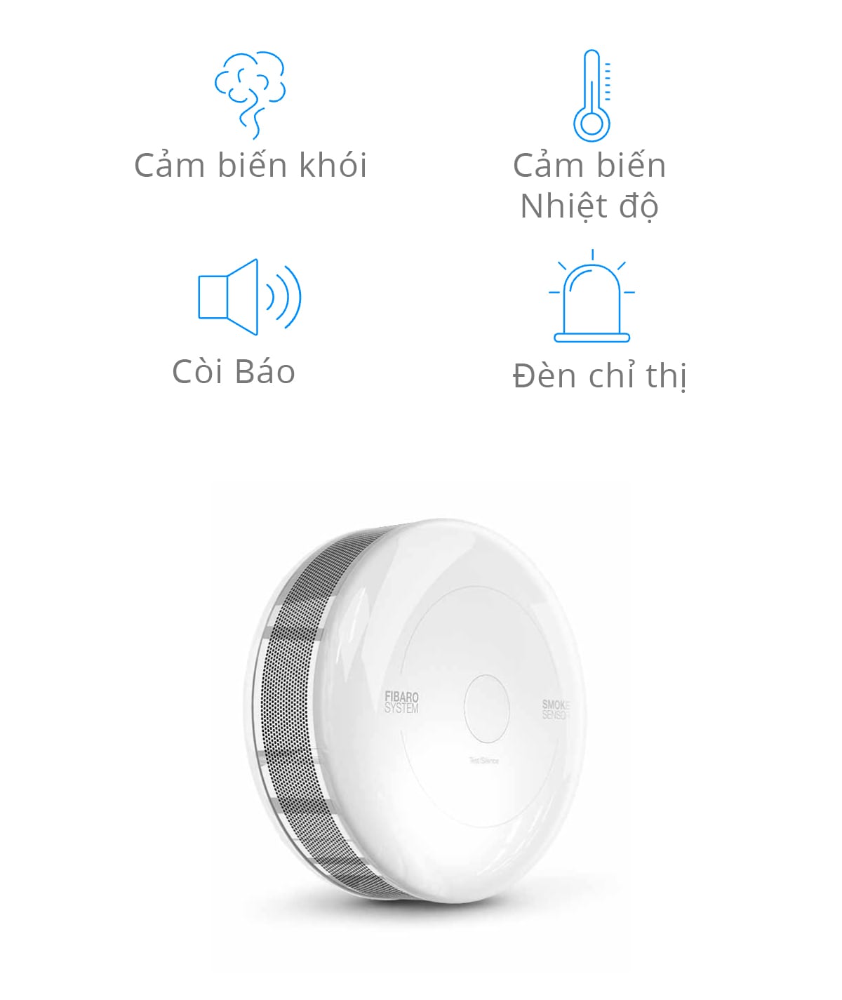 Cảm biến khói - Nhà thông minh Fibaro Kết nối không dây Z-wave, sử dụng Pin, được thiết kế nhỏ gọn, cảm biến này đồng thời phát hiện khói và cảnh báo khi có cháy, hỗ trợ điều khiển giọng nói,