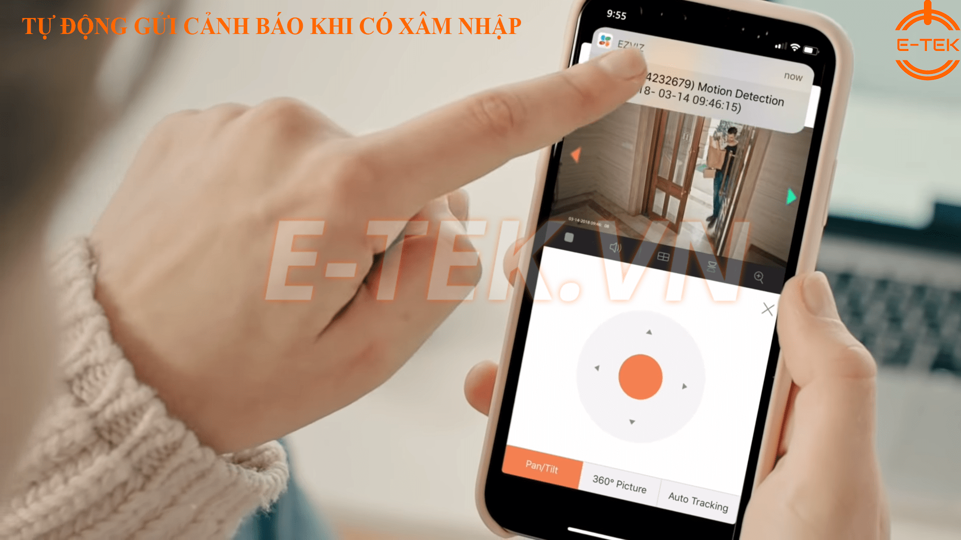 Camera IP WIFI 360 độ C6CN sẽ tự động chụp hình, gửi cảnh báo, quay video lại khi có người đi vào vùng giám sát hoặc khi hệ thống cảnh báo của hệ sinh thái ezviz được kích hoạt.
