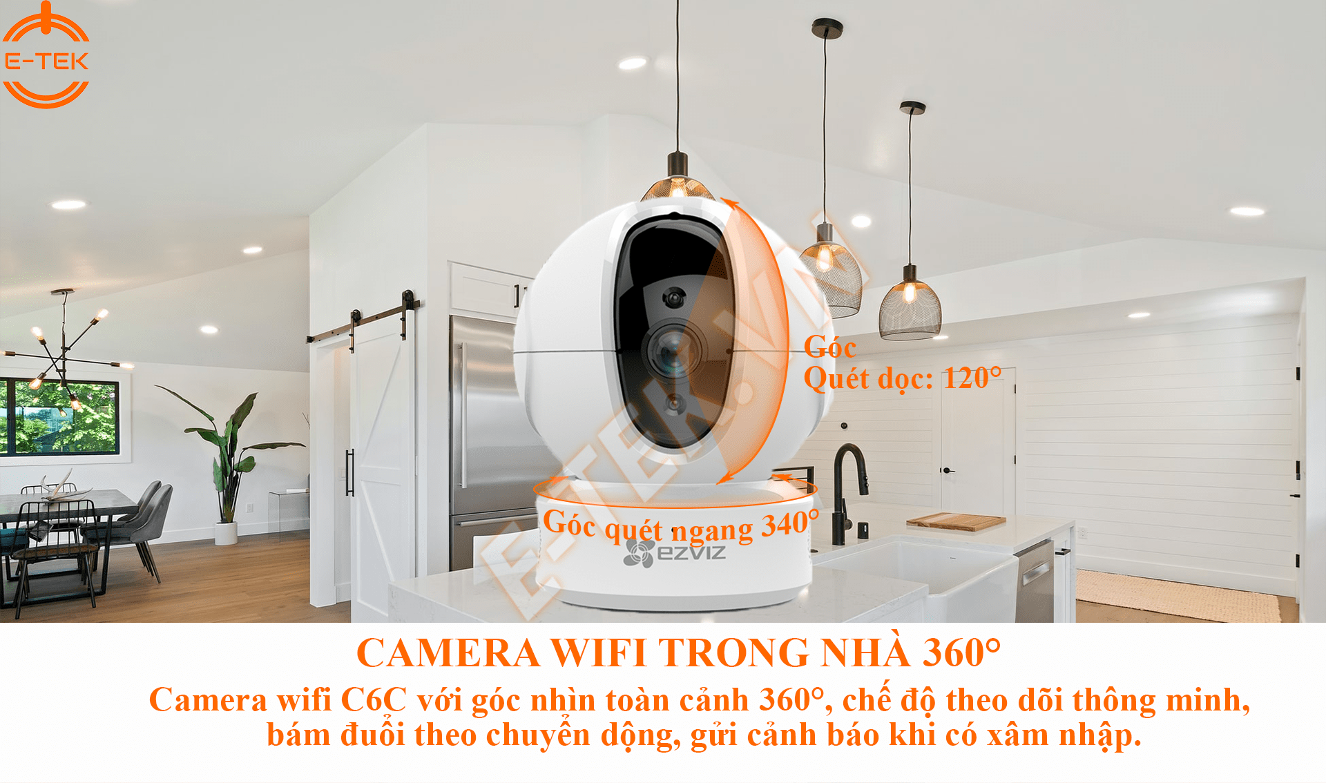 Camera IP WIFI 360 độ Ezviz C6CN là dòng camera góc nhìn toàn cảnh 360°, đàm thoại hai chiều, tầm nhìn hồng ngoại ban đêm 10 Mét, độ phân dải lên tới 2 Mega Pixel, tự động gửi cảnh báo khi có trộm, tự động bám đuổi theo chuyển động, hỗ trợ tích hợp với hệ thống báo động của Ezviz, mang lại không gian an toàn tuyệt đối cho căn nhà của bạn.