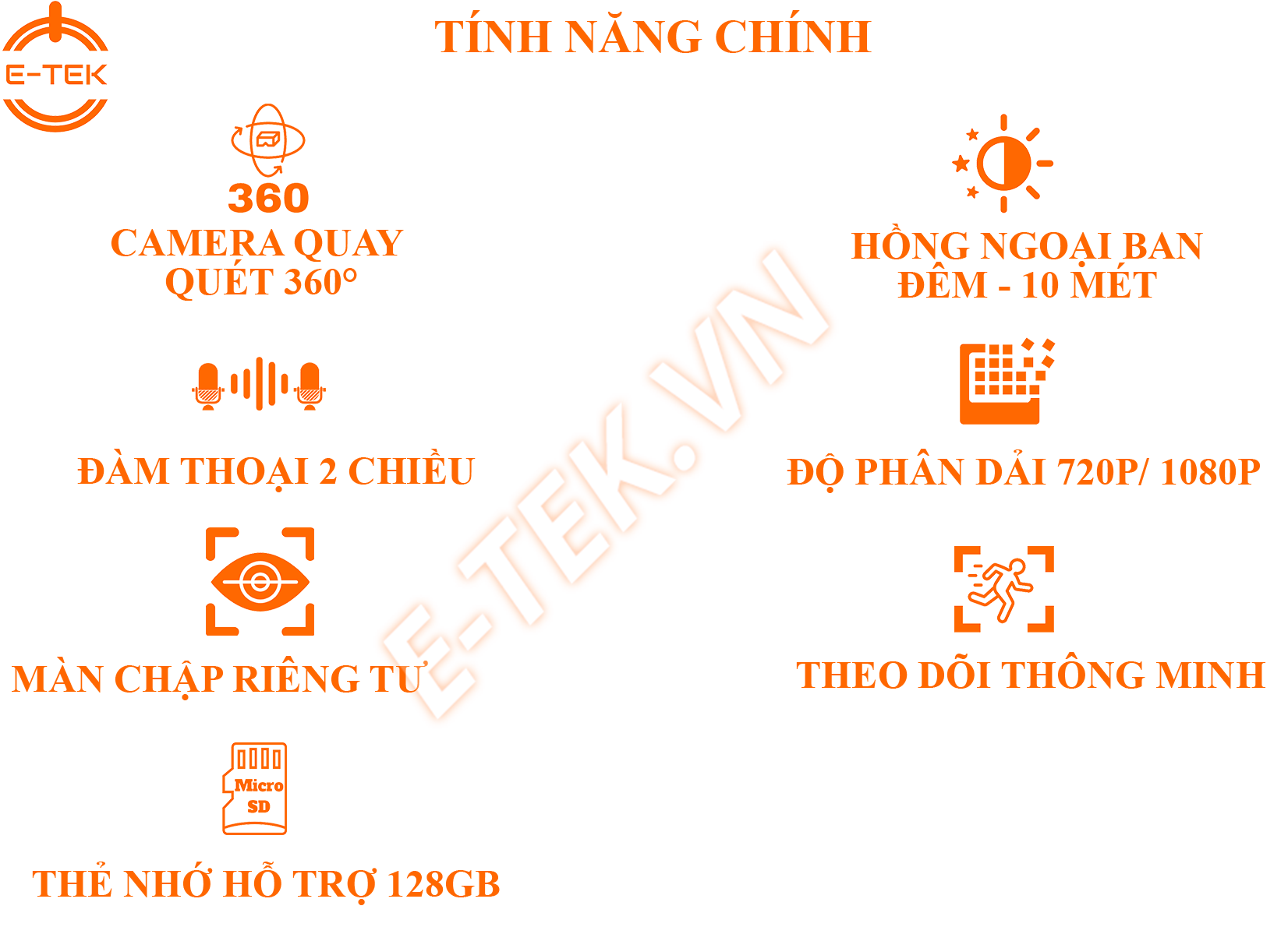 Ống kính: 4mm@ F2.2, góc nhìn chéo 90°, góc xoay ngang 340°, góc xoay dọc 120°,