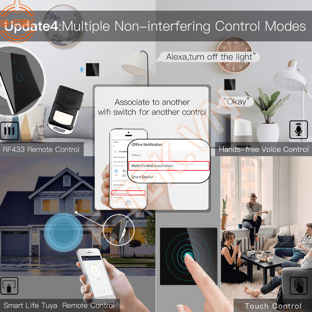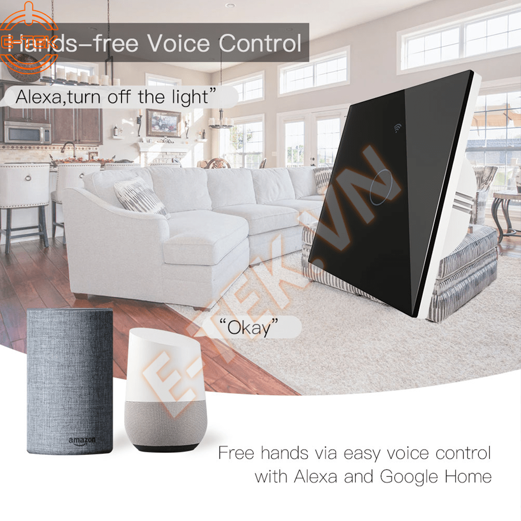 Công tắc cảm ứng thông minh TUYA hỗ trợ kết nối nâng cao tới các thiết bị / trợ lý ảo trên điện thoại để điều khiển bằng giọng nói: Amazon Alexa, google Assisitant giúp bạn điều khiển theo chế độ rảnh tay.