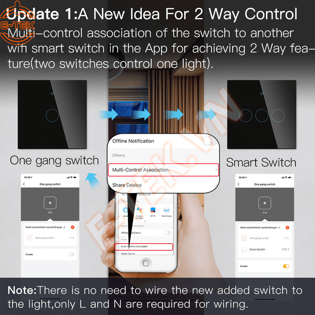 Nếu công tắc điện đang sử dụng nhà bạn vì một lý do nào đó, chỉ đi 1 sợi dây Lửa đến công tắc, đừng lo chúng tôi co phiên bản công tắc thông minh chỉ kết nối bằng dây lửa.
