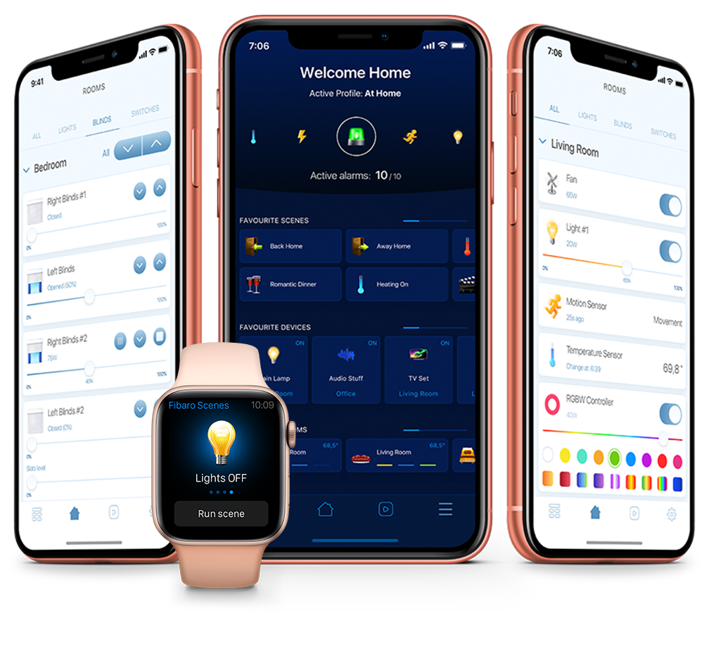 Ứng dụng di động FIBARO Home Center cho phép bạn quản lý các công tắc và ổ cắm thông minh bằng điện thoại thông minh, máy tính bảng hoặc đồng hồ thông minh của mình. Giữ mọi thứ trong tầm kiểm soát bất cứ khi nào, và ở mọi nơi bạn muốn