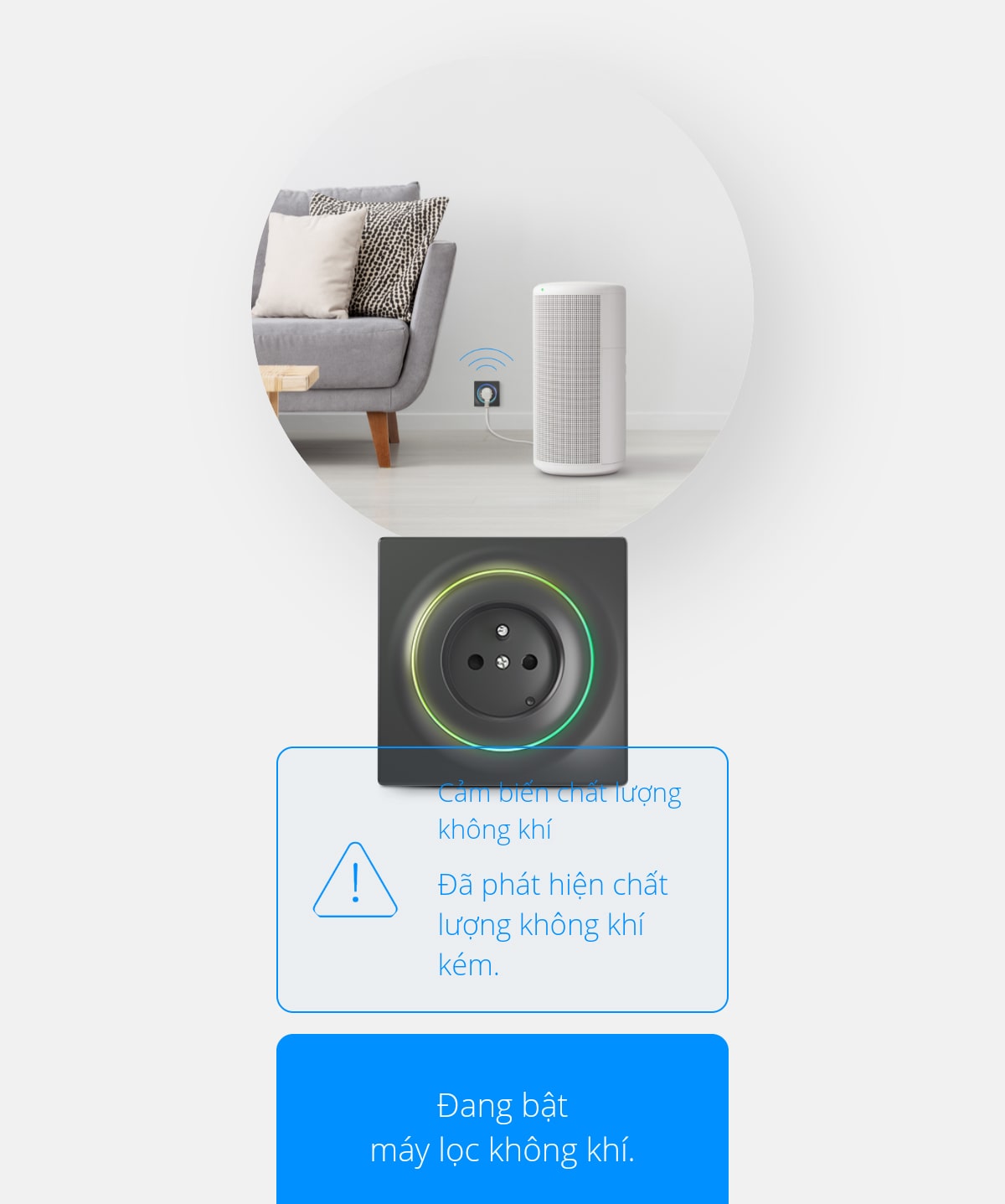 Ổ cắm điện thông minh Walli được kết nối với Hệ thống FIBARO kết nối với các thiết bị khác trong môi trường nhà thông minh. Khi cảm biến không khí phát hiện tình trạng ôi nhiễm không khí, máy lọc không khí được kết nối với Ổ cám điện thông minh Walli sẽ tự động khởi động. Để giữ cho gia đình và bạn bè được an toàn và khỏe mạnh, mọi thứ đều tự diễn ra. Đây là 1 hệ thống thông minh tự động đáp ứng đúng theo ý bạn?