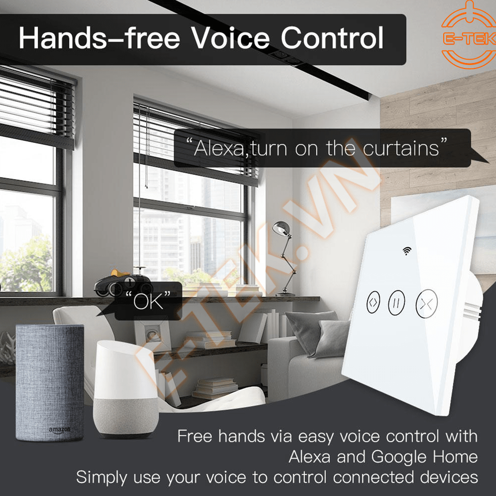 Công tắc điều khiển Rèm thông minh Tuya hỗ trợ kết nối nâng cao tới các thiết bị / trợ lý ảo trên điện thoại để điều khiển bằng giọng nói: Amazon Alexa, google Assisitant giúp bạn điều khiển theo chế độ rảnh tay.