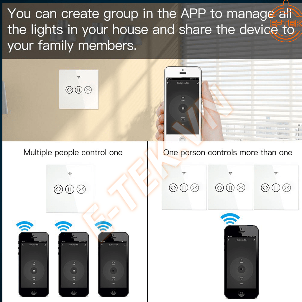Công tắc điều khiển Rèm thông minh Tuya mang đến sự linh hoạt, an toàn cho gia đình bạn với tính năng chia sẻ quyền điều khiển tới nhiều thiết bị di động của các thành viên khác trong gia đình bạn.