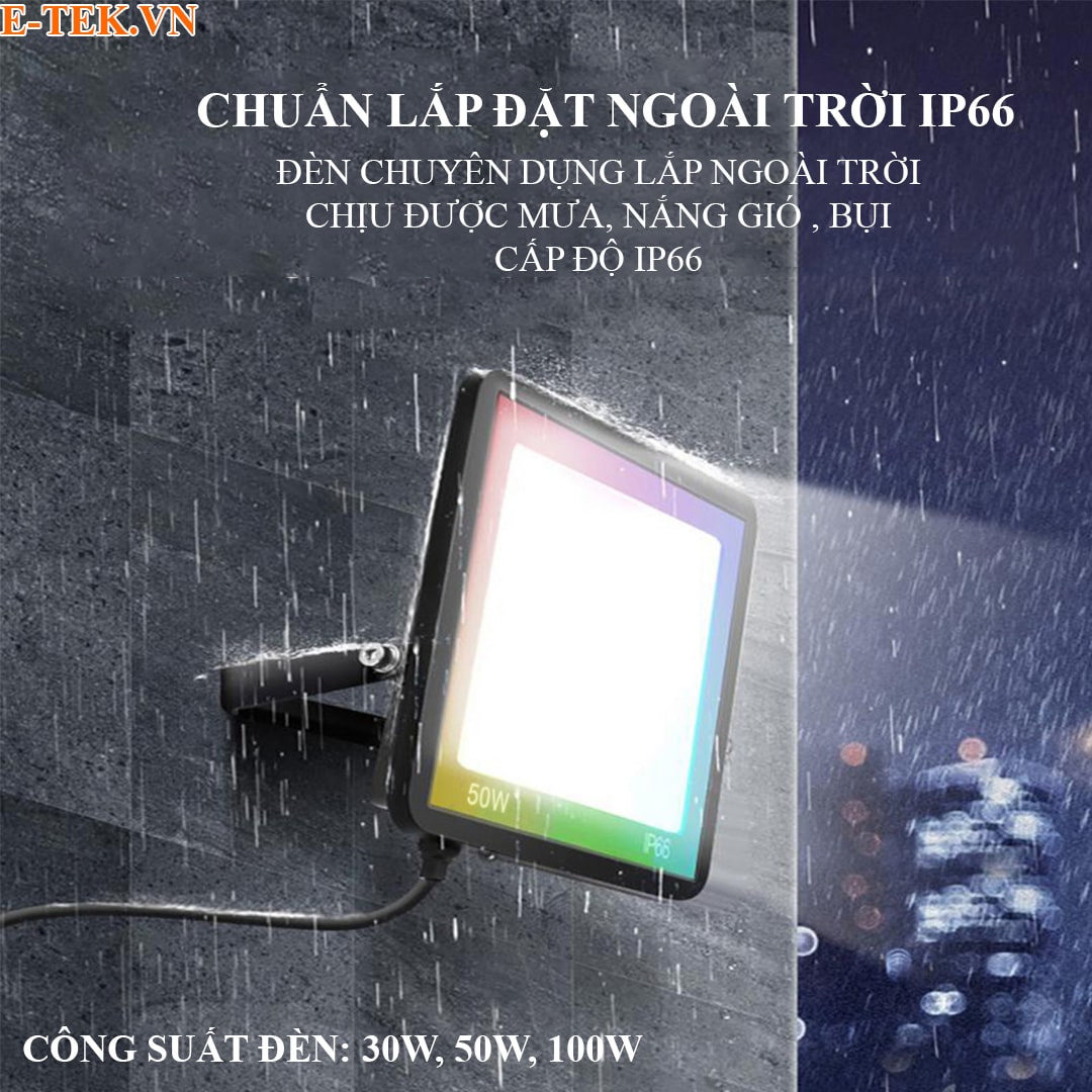GIẢI PHÁP ĐÈN PHA LED ĐỔI MÀU RGBCW NGOÀI TRỜI 100W WIFI TUYA CHO GIA ĐÌNH