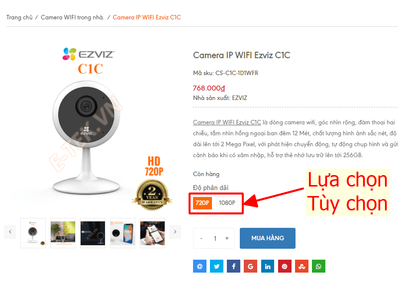 1. Lựa chọn sản phẩm -> tùy chọn của sản phẩm đó phù hợp với nhu cầu theo bước sau: