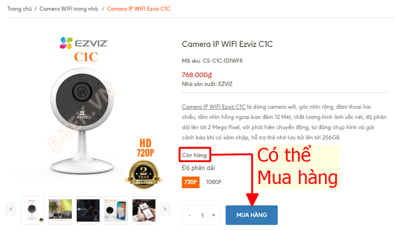 2. Kiêm tra sản phẩm còn hàng hay đang tạm hết hàng