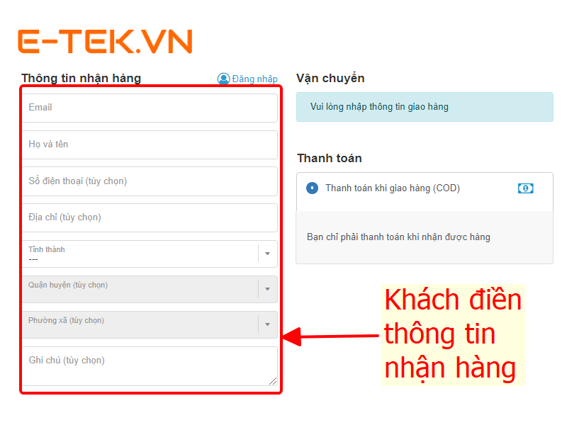 + Hoặc chuyển khoản qua số tài khoản của E-tek.vn