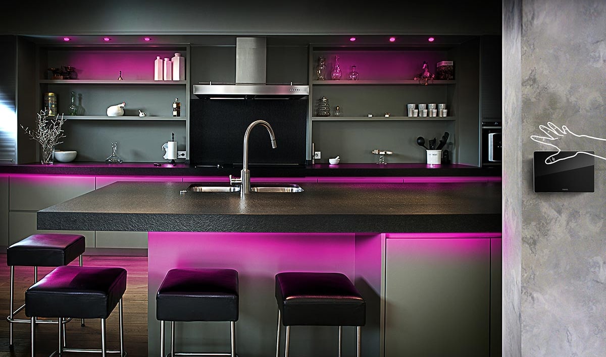 Bạn không nhất thiết phải sử dụng màn hình điều khiển Fibaro như một vật trang trí. Bạn có thể giấu thiết bị này dưới quầy bếp, bàn cà phê hoặc bàn làm việc. Màn hình điều khiển Fibaro có thể tiếp nhận điều khiển cử chỉ từ tay bạn ngay cả qua những bề mặt đó! Bạn có thể xoay bàn tày mình ở phía trên của những bề mặt này - vậy là đủ để bật đèn hoặc radio.